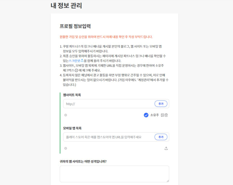 1. 아래 링크를 따라 쿠팡 파트너스 접속